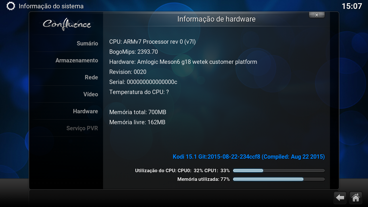 Os testes foram realizados na versão 15.1 do KODI.
