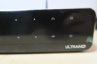 Quanto aos acessórios podemos contar com o cabo HDMI, comando IR com alguns funcionalidades de comando universal, transformador de 12V 2A e pequeno manual de instruções.