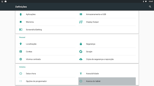 Depois no menu anterior, devem voltar a navegar até ao fundo e ir ao "Acerca do tablet".
